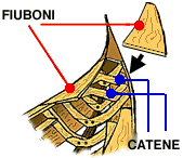 On the 2 "socheti" are fixed the "fiuboni" that is 4 mahogany or cedar boards, even they folded by the usual process, that serve as cover to the stern and bow of the gondola. They are supported by some corbels called "catene" (=chains).
